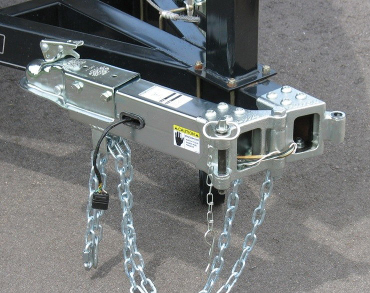 Converts standard trailer tongues into fold-away configures while preserving the existing coupler.