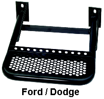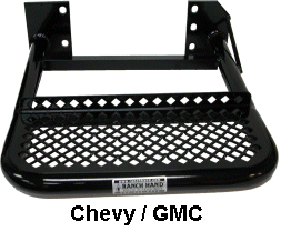 Ranch Hand's Steps are constructed of 1.5" pipe and are frame mounted to the truck. The step plate is punched to match the punch plate of the Ranch Hand grille guards and front bumpers, which match the grille of the specific make/model of vehicle. Strong and dependable.